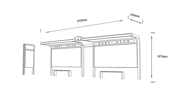 產(chǎn)品外觀 / PRODUCT DETAILS 產(chǎn)品信息 / PRODUCT INFO 【產(chǎn)品名稱】:城市品位候車亭PW3 【產(chǎn)品系列】:城市品位候車亭 【產(chǎn)品型號】:PW3 【產(chǎn)品規(guī)格】:長10800mm 寬1700mm 高2900mm 【產(chǎn)品材質(zhì)】:熱鍍鋅鋼板 【使用年限】:10-15年 【詳情致電】:181-5189-0417、157-5170-8886 備注:產(chǎn)品可根據(jù)用戶需求選用材質(zhì)、顏色及配件,個(gè)性化定制。 1、表面采用靜電噴塑(氟碳烤漆/搪瓷處理) 2、頂棚采用100*100*1.5mm、100*150*2mm鍍鋅管,3mm鍍鋅板激光切割件、1.5mm鍍鋅板焊接骨架,鋪1mm鍍鋅板(10mm陽光板) 3、立柱采用150*150*3mm鍍鋅管 4、箱體采用1.5mm鍍鋅板折彎焊接成型,門框采用全玻鋁合金型材,視窗采用6mm鋼化玻璃 5、照明電器采用LED燈粒 產(chǎn)品尺寸 / PRODUCT SIZE 關(guān)于輝盛 / 為社會分擔(dān)責(zé)任,為客戶創(chuàng)造價(jià)值 宿遷輝盛廣告設(shè)備有限公司是一家集設(shè)計(jì)、研發(fā)、生產(chǎn)為一體的城市公共設(shè)施生產(chǎn)型企業(yè)。主要產(chǎn)品有:候車公交亭、公交站臺、閱報(bào)欄、路名牌、垃圾箱、燈箱等市政設(shè)施系列產(chǎn)品和工程配套設(shè)施系列產(chǎn)品,現(xiàn)有高級技師30多人,高級職稱設(shè)計(jì)人員10人,是一家具有自主開發(fā)和設(shè)計(jì)能力的以公交亭、智能公交為主導(dǎo)的綜合性城市公共設(shè)施制造企業(yè)。為了進(jìn)一步改善生產(chǎn)工藝,提高產(chǎn)品質(zhì)量,公司引進(jìn)了先進(jìn)生產(chǎn)設(shè)備,包括立臥式加工中心,工業(yè)涂裝流水線,CNC車床,線切割機(jī),大型數(shù)控板機(jī),數(shù)控折邊機(jī),數(shù)控沖孔機(jī)床,大型折彎機(jī)等。公司還專門成立了產(chǎn)品研發(fā)部門,現(xiàn)每年自主開發(fā)或應(yīng)客戶要求設(shè)計(jì)推出多款新產(chǎn)品。 榮譽(yù)資質(zhì) / ENTERPRISE HONOR
