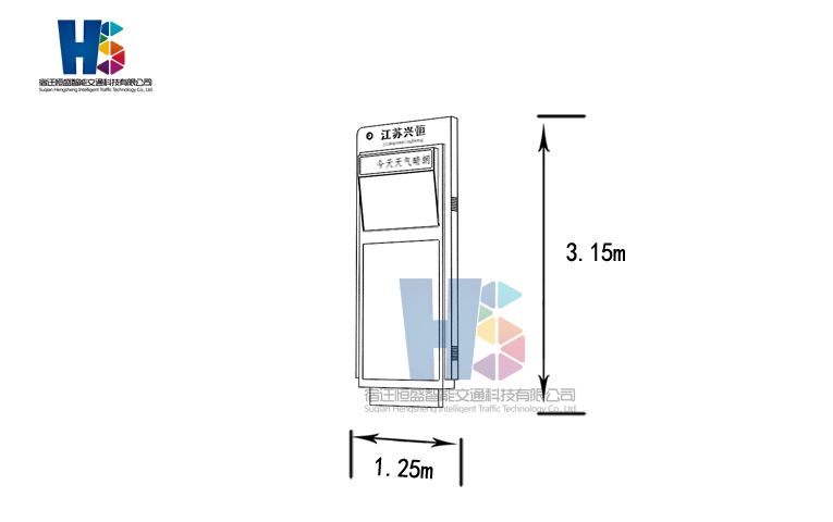產(chǎn)品外觀 / PRODUCT DETAILS 產(chǎn)品信息 / PRODUCT INFO 【產(chǎn)品名稱】:電子站牌ZP3-1 【產(chǎn)品系列】:電子站牌 【產(chǎn)品型號(hào)】:ZP3-1 【產(chǎn)品規(guī)格】:長(zhǎng)1250mm 高3150mm 【產(chǎn)品材質(zhì)】:熱鍍鋅鋼板 【使用年限】:10-15年 【詳情致電】:181-5189-0417、157-5170-8886 備注:產(chǎn)品可根據(jù)用戶需求選用材質(zhì)、顏色及配件,個(gè)性化定制。 1、表面采用靜電噴塑(氟碳烤漆/搪瓷處理) 2、頂棚采用100*100*1.5mm、100*150*2mm鍍鋅管,3mm鍍鋅板激光切割件、1.5mm鍍鋅板焊接骨架,鋪1mm鍍鋅板(10mm陽(yáng)光板) 3、立柱采用150*150*3mm鍍鋅管 4、箱體采用1.5mm鍍鋅板折彎焊接成型,門框采用全玻鋁合金型材,視窗采用6mm鋼化玻璃 5、照明電器采用LED燈粒 產(chǎn)品尺寸 / PRODUCT SIZE 關(guān)于輝盛 / 為社會(huì)分擔(dān)責(zé)任,為客戶創(chuàng)造價(jià)值 宿遷輝盛廣告設(shè)備有限公司是一家集設(shè)計(jì)、研發(fā)、生產(chǎn)為一體的城市公共設(shè)施生產(chǎn)型企業(yè)。主要產(chǎn)品有:候車公交亭、公交站臺(tái)、閱報(bào)欄、路名牌、垃圾箱、燈箱等市政設(shè)施系列產(chǎn)品和工程配套設(shè)施系列產(chǎn)品,現(xiàn)有高級(jí)技師30多人,高級(jí)職稱設(shè)計(jì)人員10人,是一家具有自主開(kāi)發(fā)和設(shè)計(jì)能力的以公交亭、智能公交為主導(dǎo)的綜合性城市公共設(shè)施制造企業(yè)。為了進(jìn)一步改善生產(chǎn)工藝,提高產(chǎn)品質(zhì)量,公司引進(jìn)了先進(jìn)生產(chǎn)設(shè)備,包括立臥式加工中心,工業(yè)涂裝流水線,CNC車床,線切割機(jī),大型數(shù)控板機(jī),數(shù)控折邊機(jī),數(shù)控沖孔機(jī)床,大型折彎?rùn)C(jī)等。公司還專門成立了產(chǎn)品研發(fā)部門,現(xiàn)每年自主開(kāi)發(fā)或應(yīng)客戶要求設(shè)計(jì)推出多款新產(chǎn)品。 榮譽(yù)資質(zhì) / ENTERPRISE HONOR
