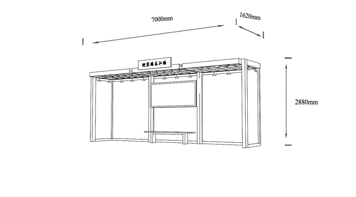 產(chǎn)品外觀 / PRODUCT DETAILS 產(chǎn)品信息 / PRODUCT INFO 【產(chǎn)品名稱】:個性定制候車亭DZ1 【產(chǎn)品系列】:個性定制候車亭 【產(chǎn)品型號】:DZ1 【產(chǎn)品規(guī)格】:長10800mm 寬1700mm 高2900mm 【產(chǎn)品材質(zhì)】:熱鍍鋅鋼板 【使用年限】:10-15年 【詳情致電】:181-5189-0417、157-5170-8886 備注:產(chǎn)品可根據(jù)用戶需求選用材質(zhì)、顏色及配件,個性化定制。 1、表面采用靜電噴塑(氟碳烤漆/搪瓷處理) 2、頂棚采用100*100*1.5mm、100*150*2mm鍍鋅管,3mm鍍鋅板激光切割件、1.5mm鍍鋅板焊接骨架,鋪1mm鍍鋅板(10mm陽光板) 3、立柱采用150*150*3mm鍍鋅管 4、箱體采用1.5mm鍍鋅板折彎焊接成型,門框采用全玻鋁合金型材,視窗采用6mm鋼化玻璃 5、照明電器采用LED燈粒 產(chǎn)品尺寸 / PRODUCT SIZE 關(guān)于輝盛 / 為社會分擔(dān)責(zé)任,為客戶創(chuàng)造價(jià)值 宿遷輝盛廣告設(shè)備有限公司是一家集設(shè)計(jì)、研發(fā)、生產(chǎn)為一體的城市公共設(shè)施生產(chǎn)型企業(yè)。主要產(chǎn)品有:候車公交亭、公交站臺、閱報(bào)欄、路名牌、垃圾箱、燈箱等市政設(shè)施系列產(chǎn)品和工程配套設(shè)施系列產(chǎn)品,現(xiàn)有高級技師30多人,高級職稱設(shè)計(jì)人員10人,是一家具有自主開發(fā)和設(shè)計(jì)能力的以公交亭、智能公交為主導(dǎo)的綜合性城市公共設(shè)施制造企業(yè)。為了進(jìn)一步改善生產(chǎn)工藝,提高產(chǎn)品質(zhì)量,公司引進(jìn)了先進(jìn)生產(chǎn)設(shè)備,包括立臥式加工中心,工業(yè)涂裝流水線,CNC車床,線切割機(jī),大型數(shù)控板機(jī),數(shù)控折邊機(jī),數(shù)控沖孔機(jī)床,大型折彎機(jī)等。公司還專門成立了產(chǎn)品研發(fā)部門,現(xiàn)每年自主開發(fā)或應(yīng)客戶要求設(shè)計(jì)推出多款新產(chǎn)品。 榮譽(yù)資質(zhì) / ENTERPRISE HONOR