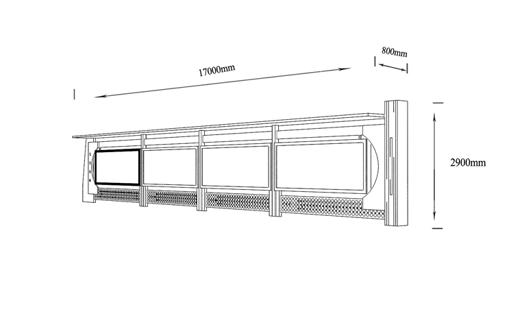 產(chǎn)品外觀 / PRODUCT DETAILS 產(chǎn)品信息 / PRODUCT INFO 【產(chǎn)品名稱】:宣傳欄XCL1-1 【產(chǎn)品系列】:宣傳欄 【產(chǎn)品型號】:XCL1-1 【產(chǎn)品規(guī)格】:長17000mm 寬800mm 高2900mm 【產(chǎn)品材質(zhì)】:熱鍍鋅鋼板 【使用年限】:10-15年 【詳情致電】:181-5189-0417、157-5170-8886 備注:產(chǎn)品可根據(jù)用戶需求選用材質(zhì)、顏色及配件,個性化定制。 1、表面采用靜電噴塑(氟碳烤漆/搪瓷處理) 2、頂棚采用100*100*1.5mm、100*150*2mm鍍鋅管,3mm鍍鋅板激光切割件、1.5mm鍍鋅板焊接骨架,鋪1mm鍍鋅板(10mm陽光板) 3、立柱采用150*150*3mm鍍鋅管 4、箱體采用1.5mm鍍鋅板折彎焊接成型,門框采用全玻鋁合金型材,視窗采用6mm鋼化玻璃 5、照明電器采用LED燈粒 產(chǎn)品尺寸 / PRODUCT SIZE 關(guān)于輝盛 / 為社會分擔(dān)責(zé)任,為客戶創(chuàng)造價值 宿遷輝盛廣告設(shè)備有限公司是一家集設(shè)計、研發(fā)、生產(chǎn)為一體的城市公共設(shè)施生產(chǎn)型企業(yè)。主要產(chǎn)品有:候車公交亭、公交站臺、閱報欄、路名牌、垃圾箱、燈箱等市政設(shè)施系列產(chǎn)品和工程配套設(shè)施系列產(chǎn)品,現(xiàn)有高級技師30多人,高級職稱設(shè)計人員10人,是一家具有自主開發(fā)和設(shè)計能力的以公交亭、智能公交為主導(dǎo)的綜合性城市公共設(shè)施制造企業(yè)。為了進一步改善生產(chǎn)工藝,提高產(chǎn)品質(zhì)量,公司引進了先進生產(chǎn)設(shè)備,包括立臥式加工中心,工業(yè)涂裝流水線,CNC車床,線切割機,大型數(shù)控板機,數(shù)控折邊機,數(shù)控沖孔機床,大型折彎機等。公司還專門成立了產(chǎn)品研發(fā)部門,現(xiàn)每年自主開發(fā)或應(yīng)客戶要求設(shè)計推出多款新產(chǎn)品。 榮譽資質(zhì) / ENTERPRISE HONOR